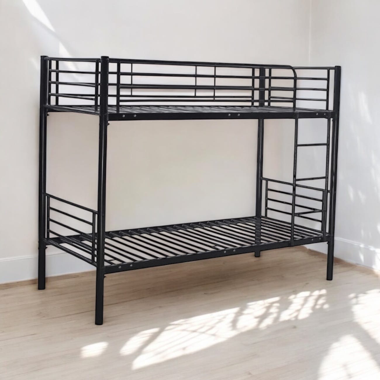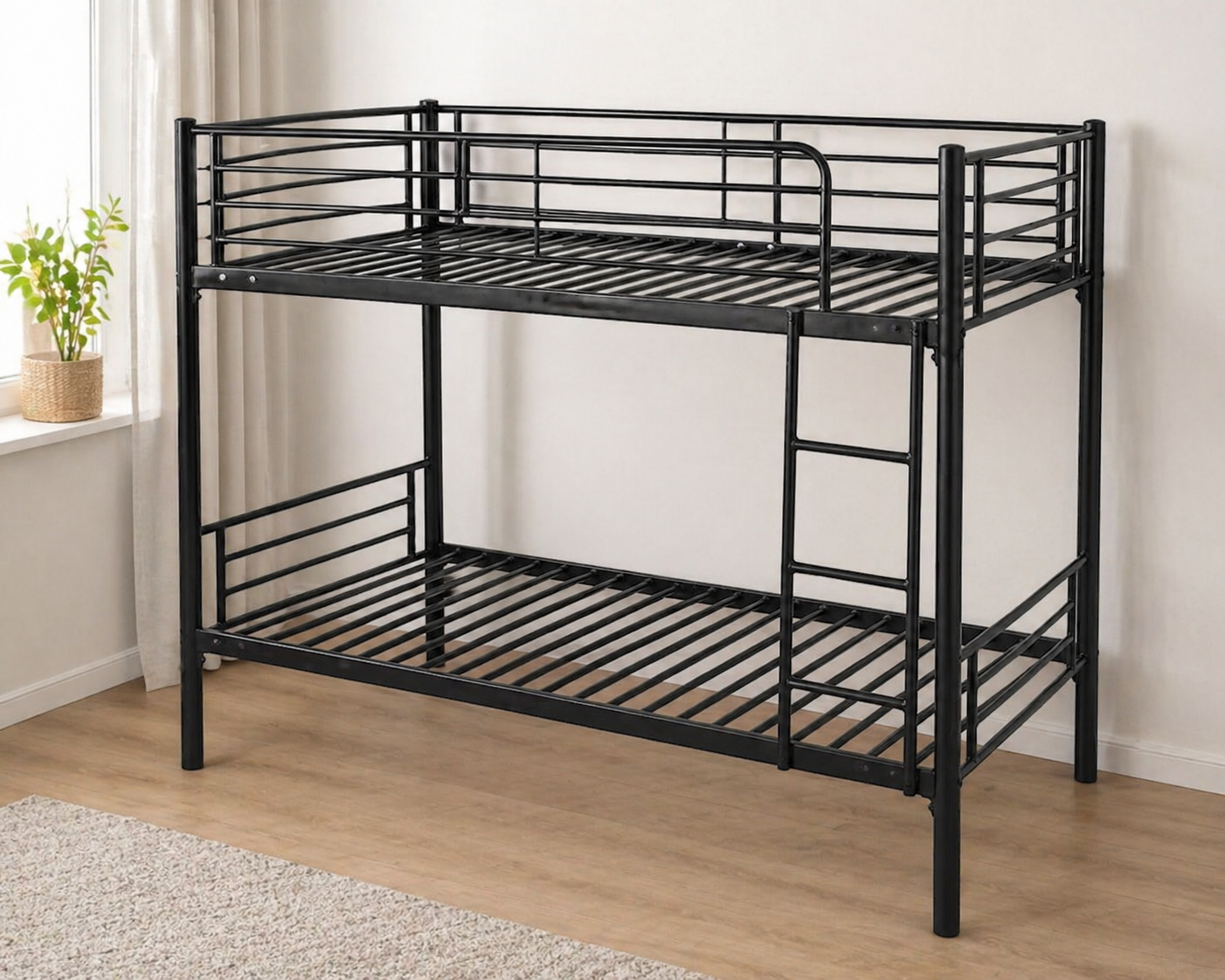 Sa structure robuste en métal garantit stabilité et durabilité. Le lit supérieur est équipé de barrières de sécurité, et une échelle intégrée facilite l’accès.