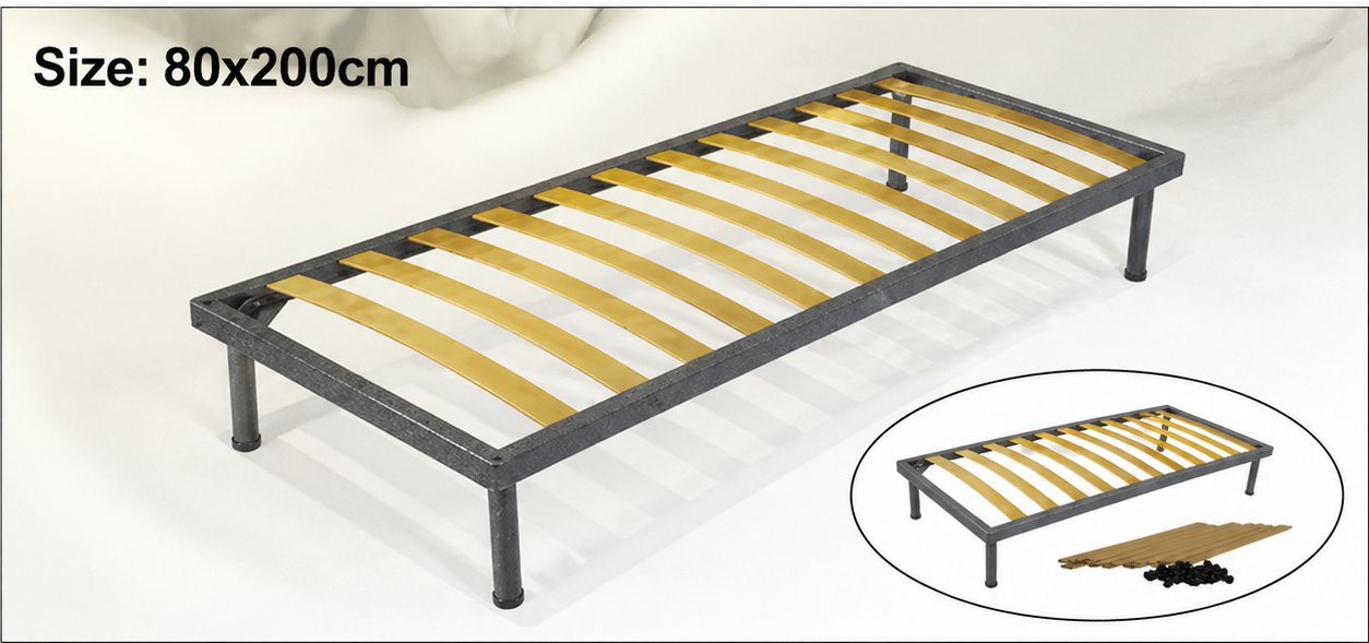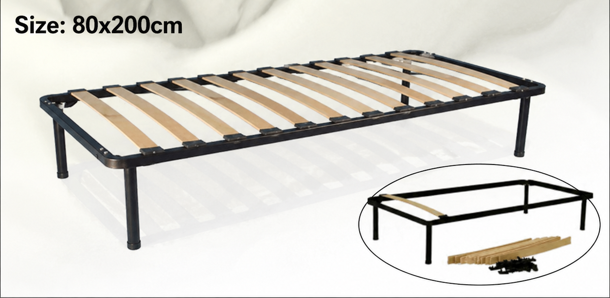 Ce sommier singlele en métal à lattes est idéal pour un usage individuel. Il offre une structure solide et durable, parfaite pour garantir un bon maintien du matelas au quotidien.