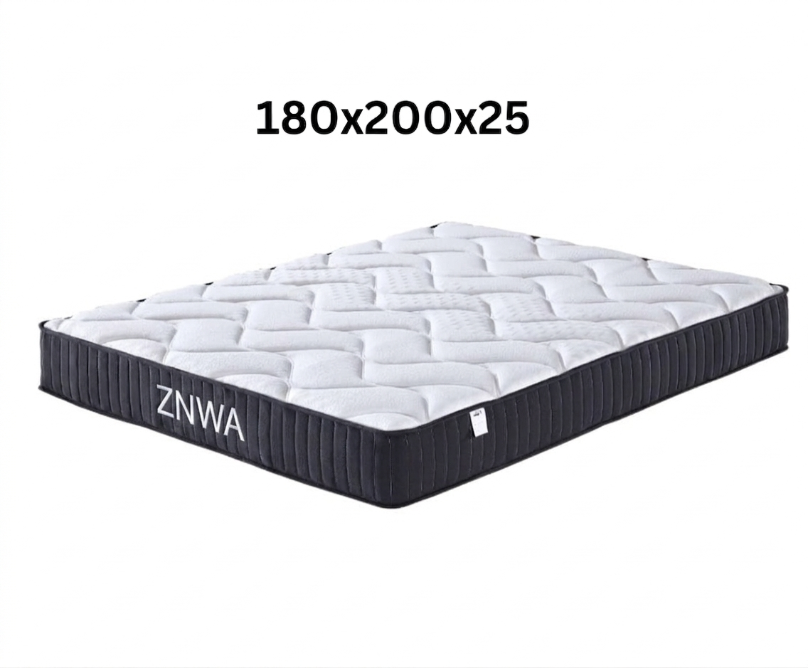Découvrez le matelas ZNWA, conçu pour vous offrir un sommeil réparateur. Avec 25 cm d’épaisseur totale et 2 cm de mousse à mémoire de forme des deux côtés, ce matelas hybride combine le soutien des ressorts avec le confort de la mousse.